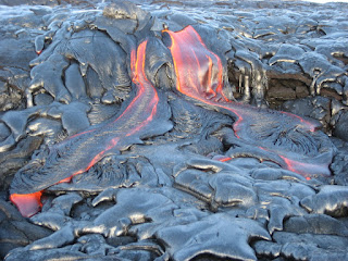 This past Sunday (2/11) Tyler, Jamal, Emma, Loren (computer geek at HVO) and I went out late afternoon/early evening to the Kilauea lava flows. Tyler's job/internship at HVO is to go out in to the lava flows 2-3 times a week to map the current eruptions, so he was able to take us directly to active flows. It was about a hour hike out to the flows and then blam! We could see the heat shimmer off the flows and with strong winds, it felt like we were in a huge hair dryer. The steam vents were rather active, so we had to watch where we stood to avoid inhaling toxic fumes. We got lucky and saw a small lava fall break out. Long sleeves and pants are recommended when standing close to the lava - I learned that the hard way when my arm hair was singed while video taping some lava.